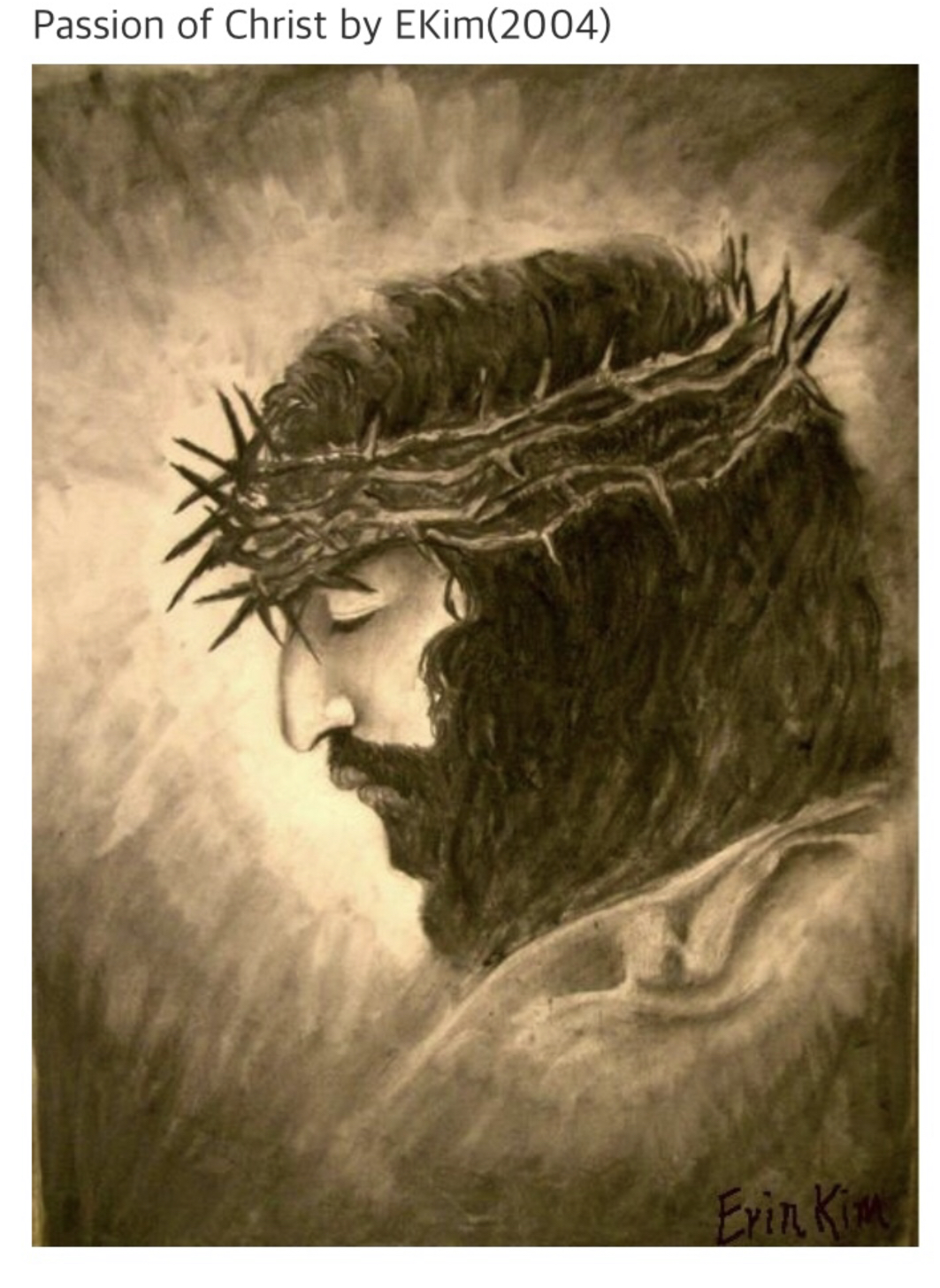 "그가 찔림은 우리의 허물때문이요 고난 주간을 맞아 다시 이 그림으로 주님의 고난을 기억하며..... 예수님의 죽으심은 처절했고 거기서 흘러나온 엘리엘리라마 사박다니라는 절규는 지금까지 죄인된 인간이 하나님을 향해 발언하던 절규였다. 그것이 이제는 성육신하신 하나님의 고통의 비명과 원망이 되어 몰트만의 표현을 빌자면 "버림을 받으신 하나님" "십자가에 달리신 하나님"이 스스로 버리는 음성이다.