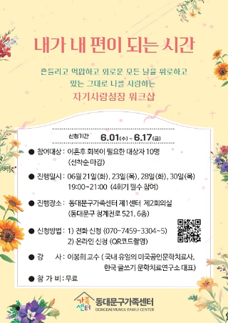 동대문구 가족센터: 이혼 후 치유와 성장을 위한 집단 글쓰기문학치료